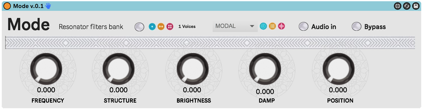 Ein Clone vom Mutable Instrument Modul Rings, mit Max4live gemacht. Es ist eine Resonator